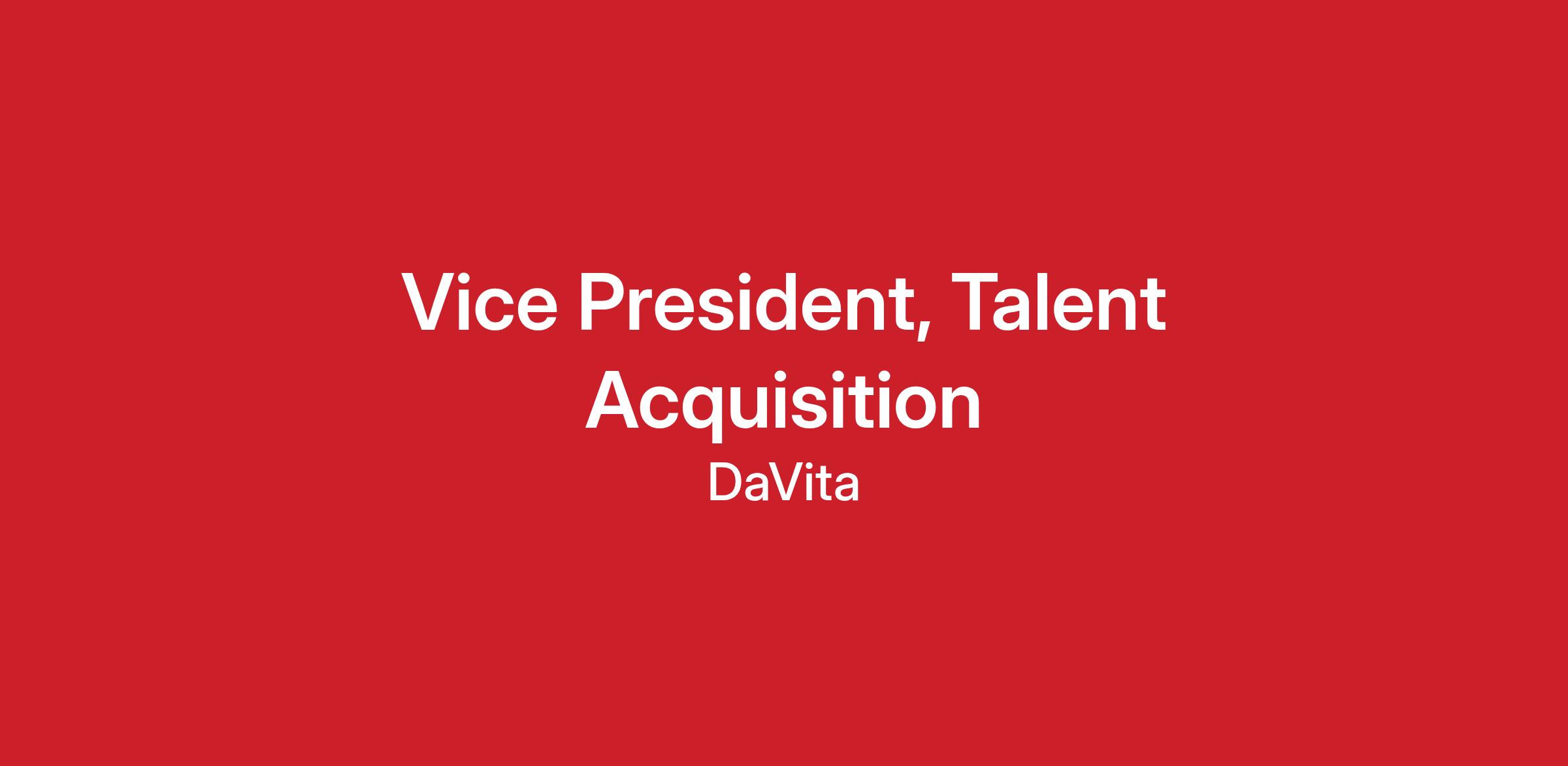 This leader will set strategy, drive execution, and continuously improve how DaVita attracts, hires, and onboards teammates, ensuring the right teammates are in the right roles at the right time to support exceptional patient care.