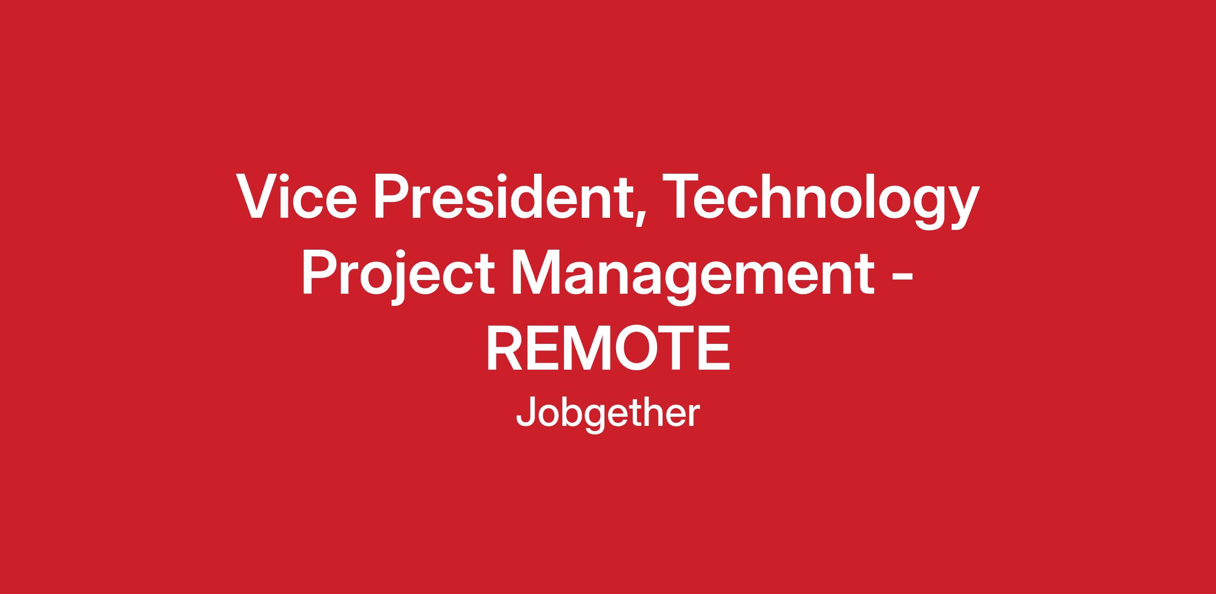 Vice President, Technology Project Management - REMOTE