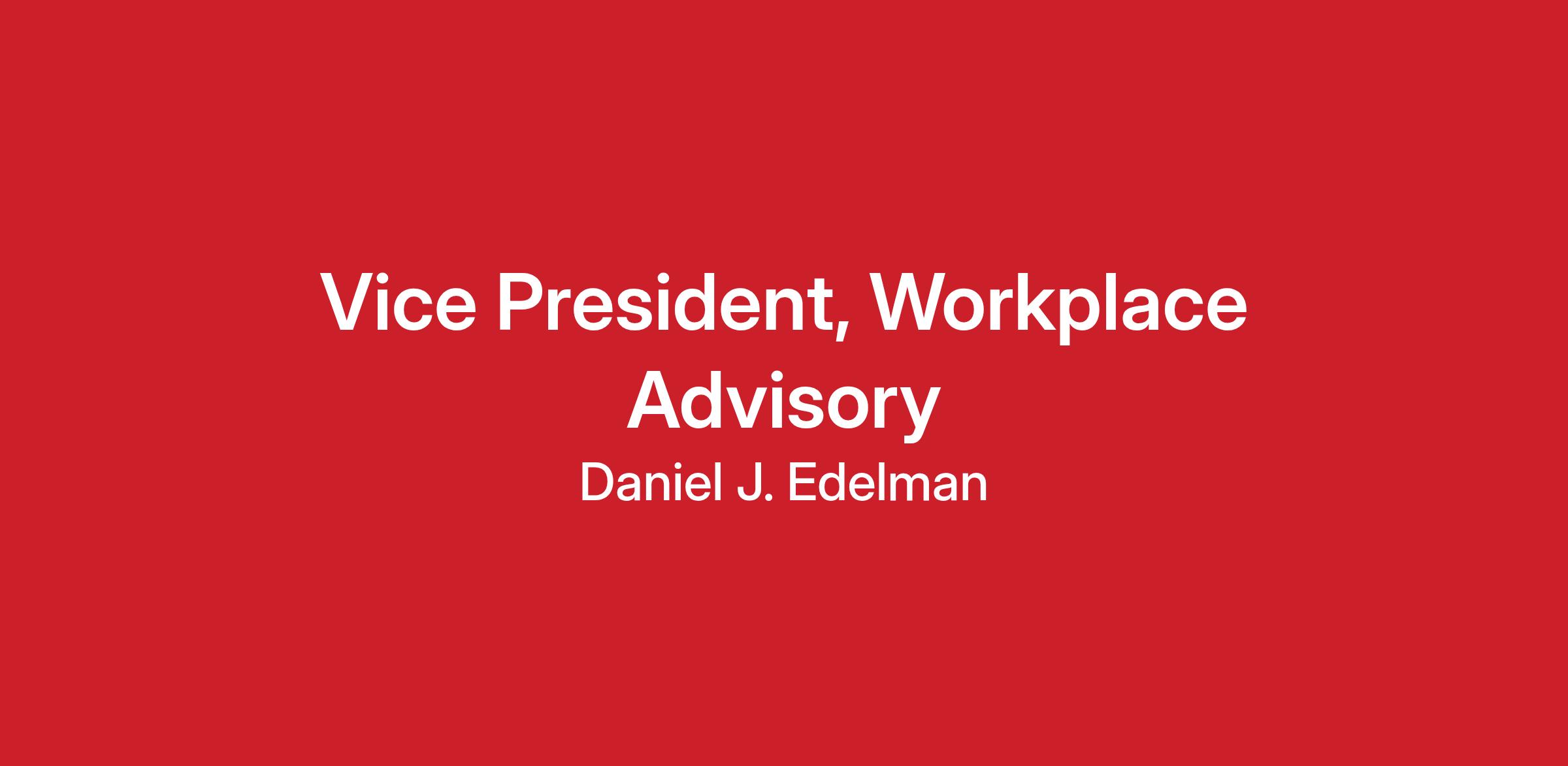 Edelman’s Workplace Advisory is a global team of business transformation specialists delivering solutions informed by data, powered by storytelling and automated for speed with AI, giving our clients the means to act with certainty. We build stronger companies from the inside out by focusing on the core driver of successful transformations – people. Our team’s human-centric approach powers successful transformation by giving our clients the ability to act with certainty and deliver a trusted workplace transformation. Through this, we strengthen: